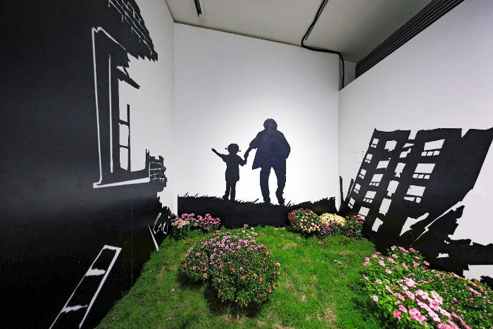 在“美好在場”展區,藝術家劉寶亮的《我在現場》將觀眾引入另一個空間,一場由廢墟與鮮花構筑的蒙太奇敘事悄然展開,美好也變得具體而臨近,堅定且溫暖。這里設置的“問答墻”,以“你相信這個世界是美好的嗎?”“當他人陷入困境時,你愿意伸出援手嗎?”等靈魂發問引人深思,而伊利對此的回應是,始終堅守營養健康、助力美好生活的承諾,持續在場、始終行動。