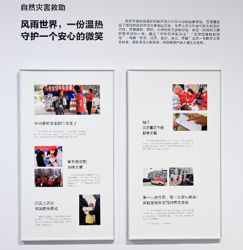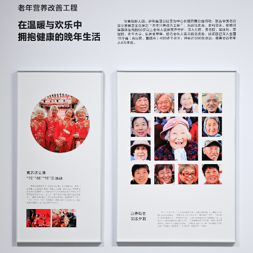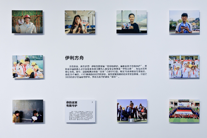 藝術與公益交織背后,藏著伊利多年深耕公益、長線守護美好的溫暖故事。展墻上“一張拍不正的合影”是“伊利營養2030”以營養守護成長,關愛偏遠山區兒童的寫照;“為大象‘建食堂’”是“伊利家園行動”作為亞洲象“護象人”,踐行生物多樣性保護的鮮活身影;“高原上開出微笑的格桑花”是伊利在“自然災害救助”行動中捕捉到的溫暖瞬間……這些美好的故事,共同詮釋了“公益搭子有伊利”的擔當與溫度。